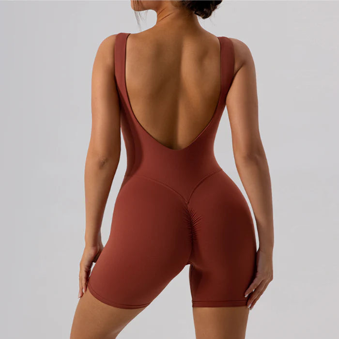 Nude hollowed-out yoga bodysuit yoga shorts 4colors